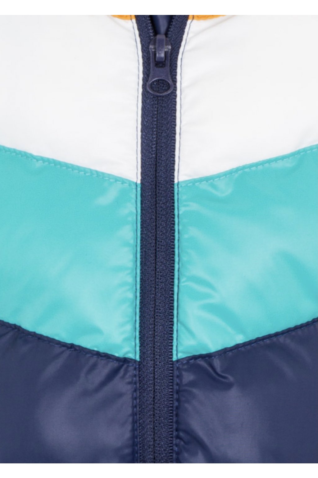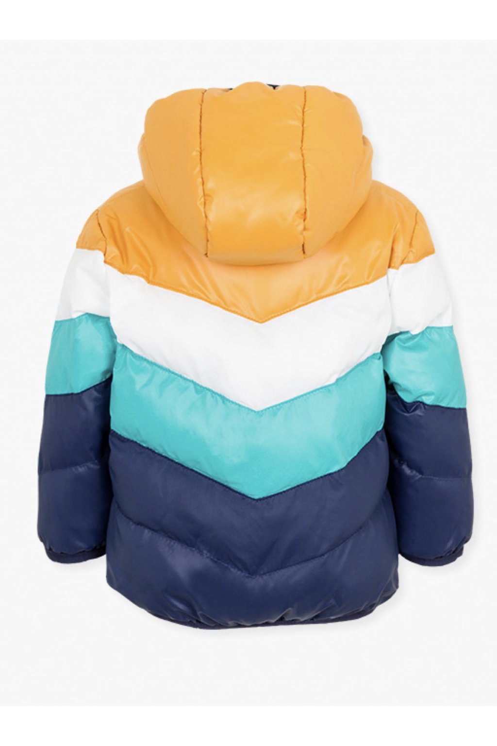 teplá zimní prošívaná bunda s odnímatelnou kapucí dvě přední kapsy barevná (tmavě modrá, béžová, hořčicová) flísová podšívka drobná nášivka na přední části