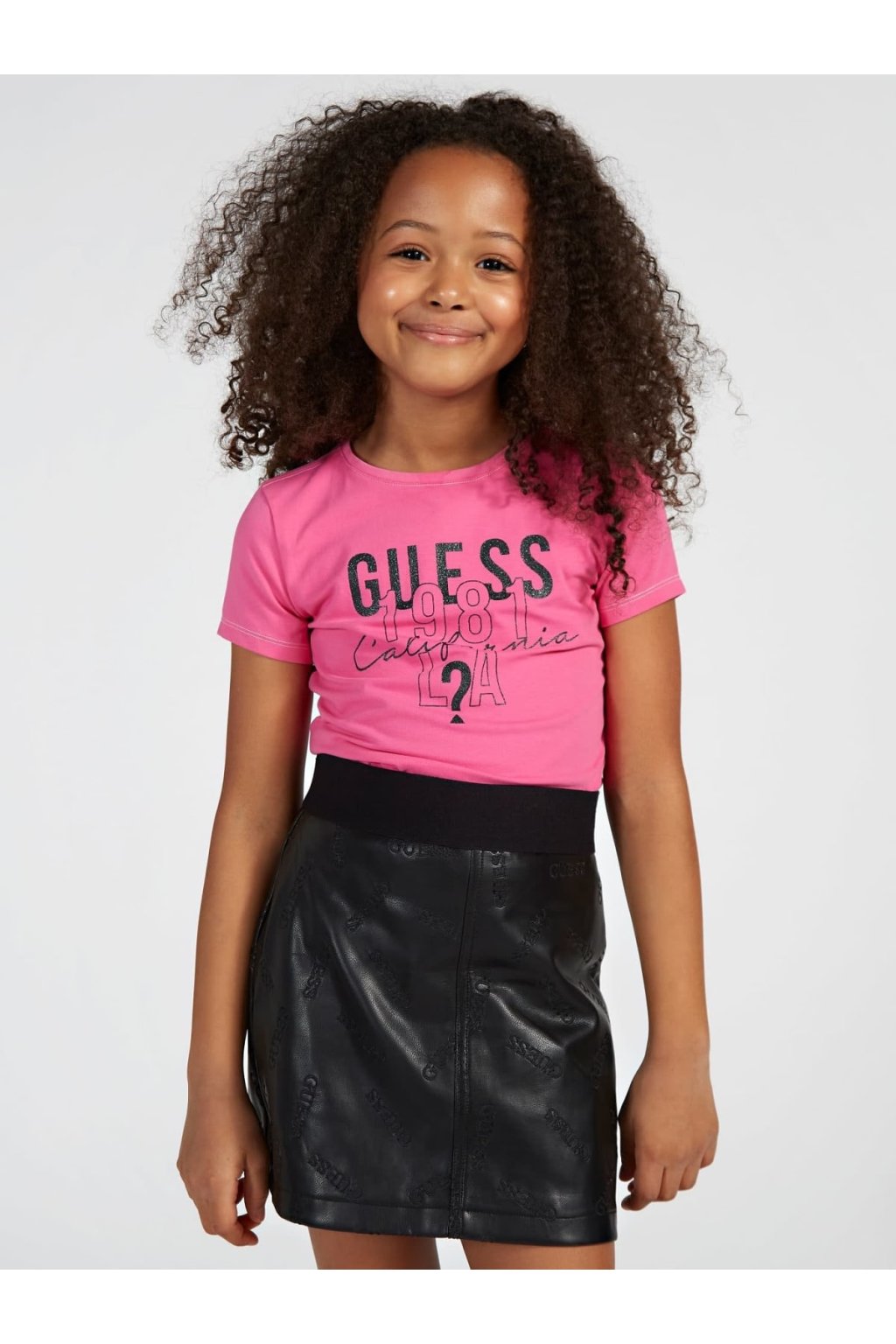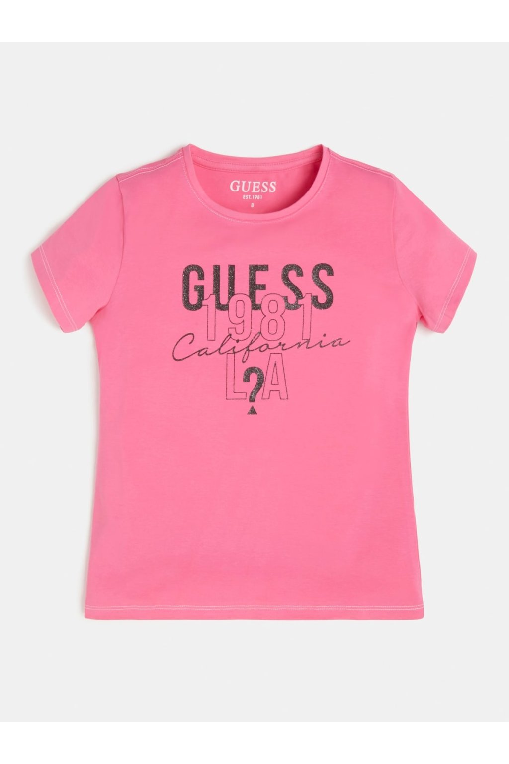 Dívčí tričko s krátkým rukávem GUESS, růžové s nápisem