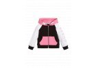 letní dívčí komplet bílé tričko s potiskem Guess potisk je barevný se třpytkami a dozdoben flitry elegantní kanýrek podél trička u krku dva cvočky na zapínání sytě růžové...