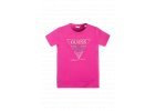 Dívčí tričko s krátkým tylovým rukávem GUESS, růžové s nápisem